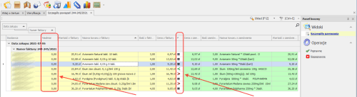 „>” – oznacza, że cena z faktury jest wyższa od ceny zakupu;