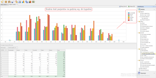 Moduł Raporty i analizy-> widok Śr. ilość pacjentów na godzinę (dni)