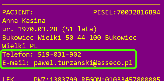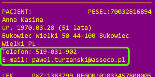 Dla nowych e-recept pobieranych z SIM dodano prezentację numeru telefonu pacjenta oraz jego adresu e-mail, o ile zostały zapisane w dokumencie pobranej e-recepty.