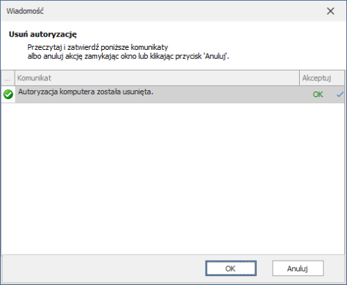 , pojawi się wtedy komunikat, informujący o dodaniu autoryzacji: