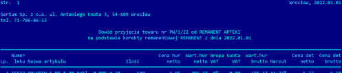 W tym celu w Słowniku hurtowni zostanie utworzony dostawca o nazwie REMANENT APTEKI, na którego będą rejestrowane dokumenty PW.