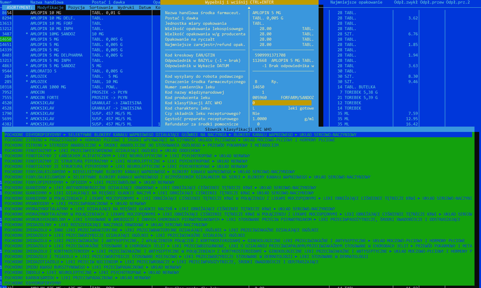 Dodano obsługę przez program klasyfikacji anatomiczno-terapeutyczno-chemicznej ATC WHO. W tym celu w karcie leku dodano pole Kod klasyfikacji ATC WHO.