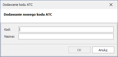 Klikając na symbol X kod ATC zostanie usunięty z pola, jeżeli się tam znajduje.