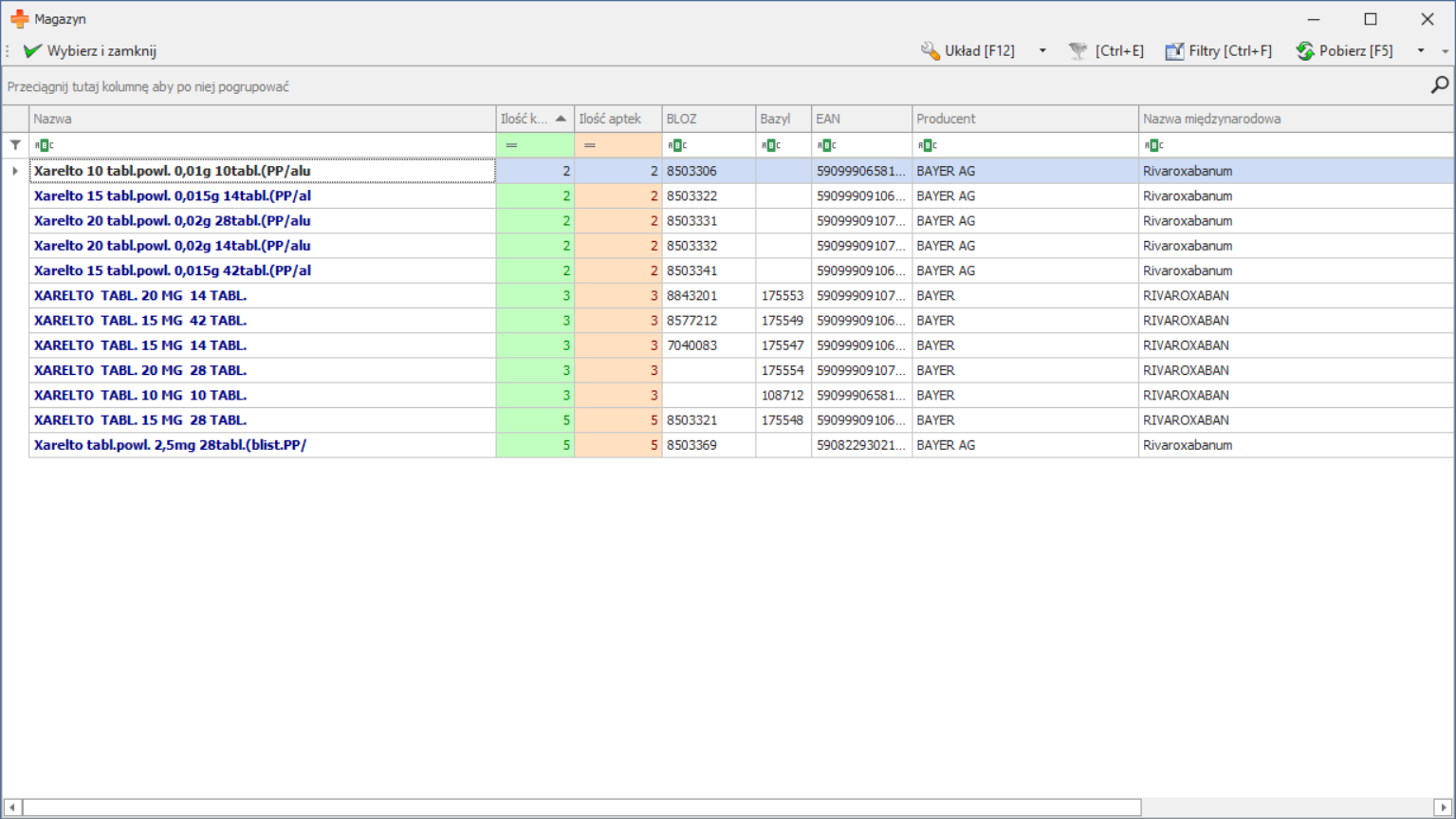 Apteki, które korzystają z optymalizacji zamówień dziennych w Sertum, tworząc zamówienie dzienne poprzez kreator, wygenerują zamówienie na ilości preparatu Xarelto w oparciu o swój aktualny stan magazynowy i sprzedaż.