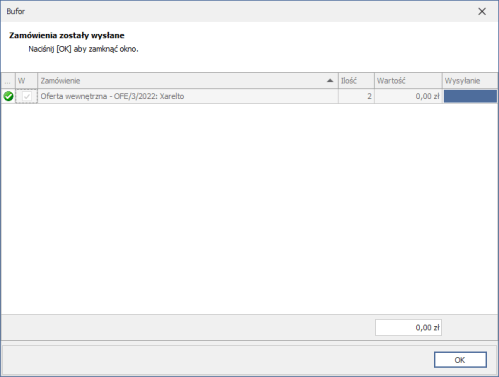 Zamówienie do promocji wewnętrznej można złożyć bezpośrednio z Bufora zamówienia. Wystarczy do bufora dodać lek Xarelto i jeśli promocja wewnętrzna jest korzystniejsza od innych ofert, to zostanie zaproponowana podczas optymalizacji zamówienia.