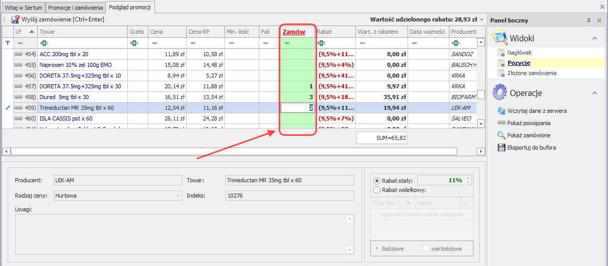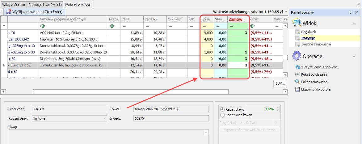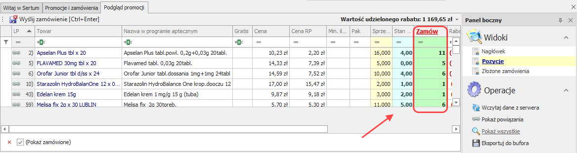 Aby zamówić preparaty z promocji, klikamy dwa razy na dowolnej pozycji z wybranej promocji lub korzystamy z przycisku