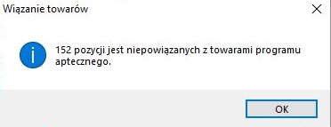 Aby powiązać towary należy kliknąć przycisk OK , wtedy pojawi się okno z następującym komunikatem:
