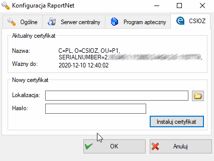 W pierwszym kroku upewnij się, że na komputerze gdzie został zainstalowany program RaprotNet jest zainstalowany nowy Certyfikat P1.