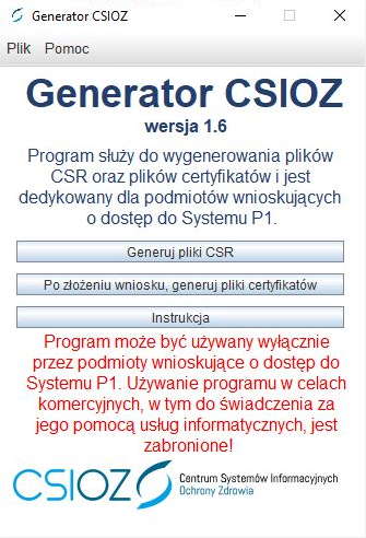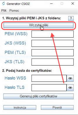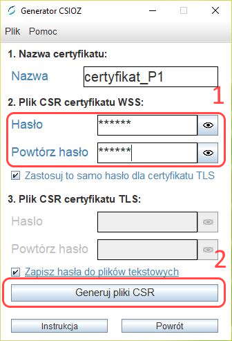 KROK 1. Wygenerowanie plików CSR – czyli TLS i WSS za pomocą generatora CSIOZ