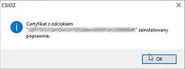 Po poprawnym zainstalowaniu certyfikatu pojawi się komunikat: