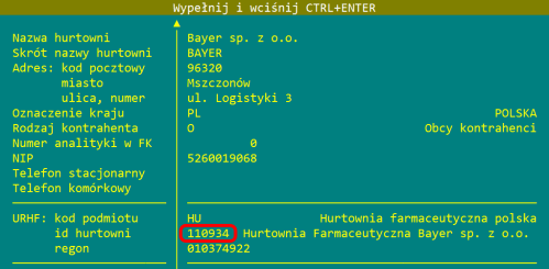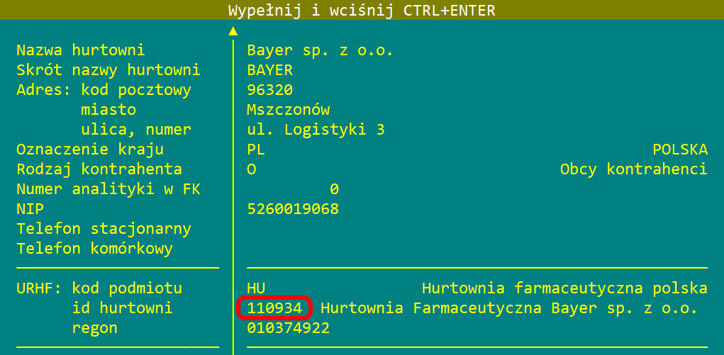 Identyfikator Hurtowni Farmaceutycznej Bayer w Rejestrze Hurtowni CeZ uległ zmianie. Nowy identyfikator to 110934: