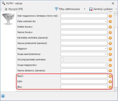 - W raporcie Sprzedaż szczegółowo zostały dodane filtry: Bloz, EAN i Bazyl