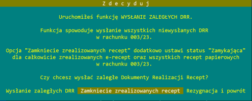 W funkcji Rozchody > Przeglądanie starych rozchodów > Modyfikacje > Wysłanie zaległych DRR z wybraną opcją Zamkniecie zrealizowanych recept dodano automatyczne zamknięcie wszystkich recept papierowych w przeglądanym rachunku.