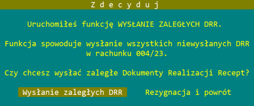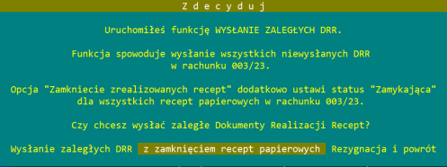 Zmieniono działanie funkcji Rozchody > Przeglądanie starych rozchodów > Modyfikacje > Wysłanie zaległych DRR. Obecnie opcja Wysłanie zaległych DRR z zamknięciem recept papierowych jest możliwa do wykonania wyłącznie podczas przeglądania zamkniętego okresu rozliczeniowego z NFZ.
