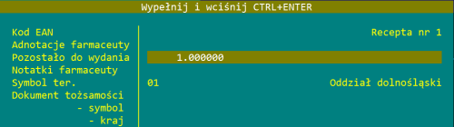 Poprawiono działanie funkcji Zmiana parametrów recepty podczas aktualizacji zawartości pola Pozostało do wydania. Zmiana z wartości dodatniej na zero spowoduje zamknięcie realizacji wskazywanej pozycji, a z zera na wartość dodatnią spowoduje zmianę na realizację częściową.