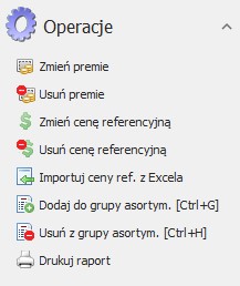 – operacja pozwala na usunięcie zaznaczonych kartotek z istniejącej grupy asortymentowej.