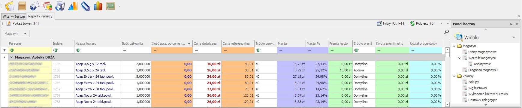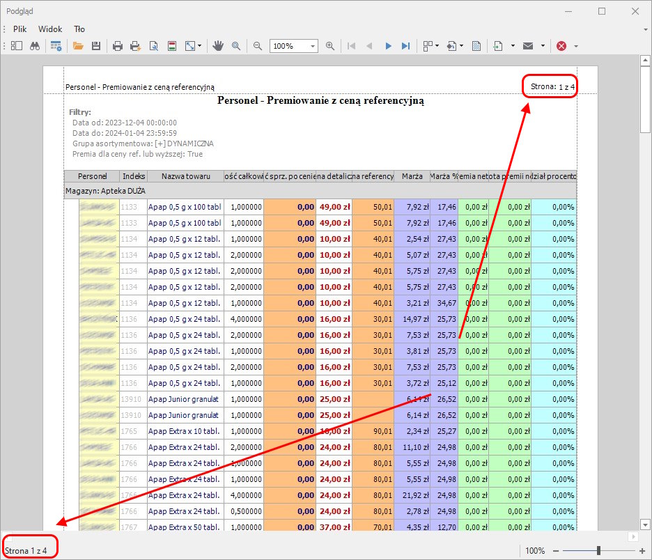 Moduł Raporty i analizy-> widok Personel-> podwidok Premiowanie z ceną referencyjną