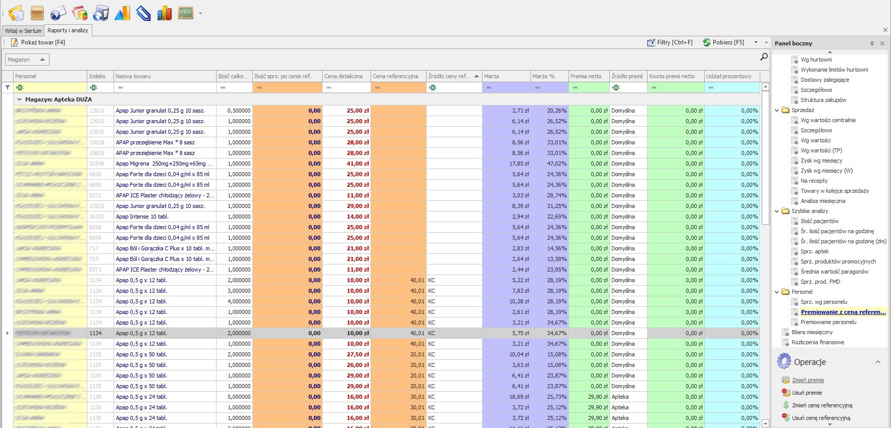 Wraz z wydaniem nowej wersji aplikacji Sertum, zmieniło się działanie raportów dotyczących premiowania personelu. Aktualnie premiowanie personelu zostało zastąpione przez Premiowanie z ceną referencyjną.