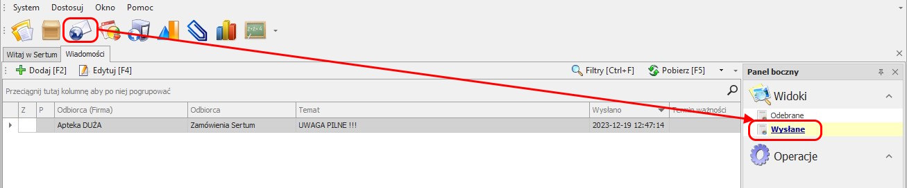 Aby sprawdzić treść wysłanego komunikatu musimy otworzyć Moduł Wiadomości -> widok Wysłane.