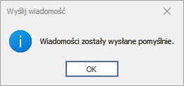 Po uzupełnieniu pola Temat oraz treść i kliknięciu przycisku OK, o wysłaniu wiadomości zostaniemy poinformowani następującym komunikatem: