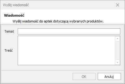 Operacja umożliwia menedżerowi wysłanie wiadomości dotyczącej zaznaczonych na raporcie kartotek. Wiadomości wyświetlą się w Sertum (moduł Wiadomości) na wszystkich loginach aptecznych, których dana kartoteka dotyczy.