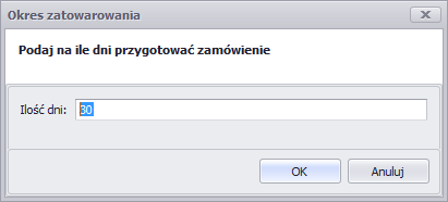 Domyślnie ustawiony jest okres w ilości 30 dni. Po podaniu okresu należy kliknąć przycisk OK.