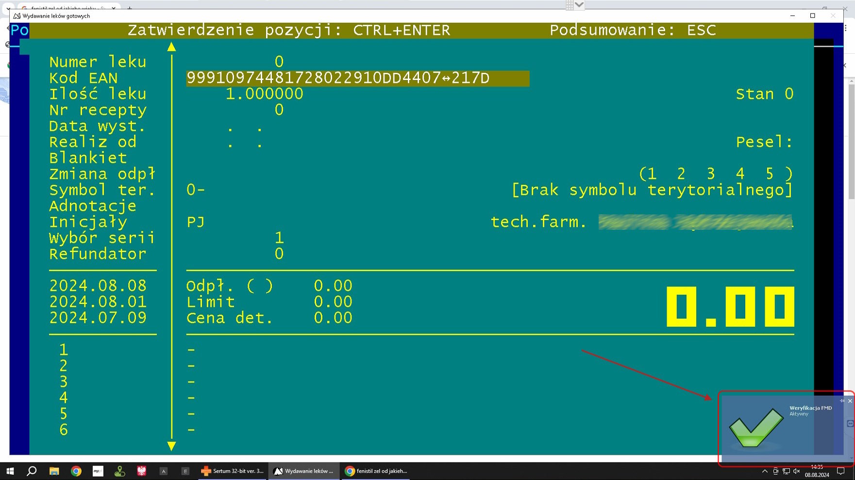 Wszelkie wykonane w ramach modułu FMD operacje, sprawdzimy również w apliakcji Sertum Apteka Malickiego.