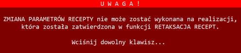 Wyłączono blokadę zmiany parametrów recepty dla realizacji, które zostały wcześniej zatwierdzone w funkcji Rozchody > Retaksacja recept.