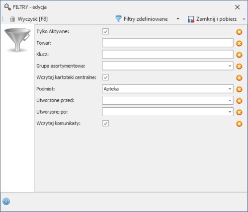 W oknie Filtry [F8] wypełniamy dostępne pola:
