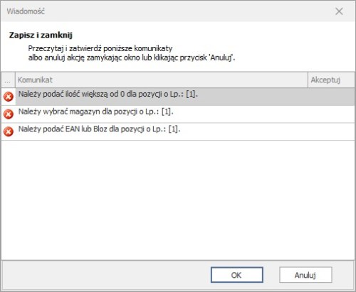 Ilość w innej cenie – ilość towaru dostarczona w innej cenie niż cena z zamówienia.
