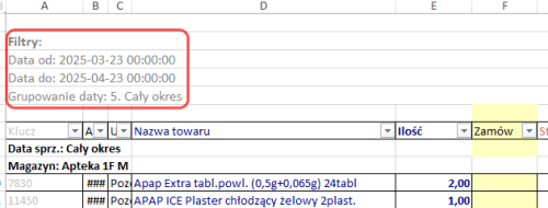 - Eksportując raporty do Excela (operacja Eksportuj do Excela dostępna po kliknięciu prawym klawiszem myszy na widok raportu) będą eksportowane także aktualnie ustawione filtry.