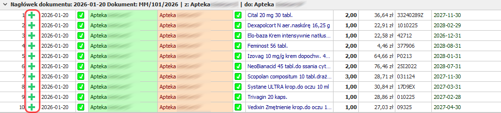 3. Wczytanie przesunięcia jako zakupu w programie aptecznym
