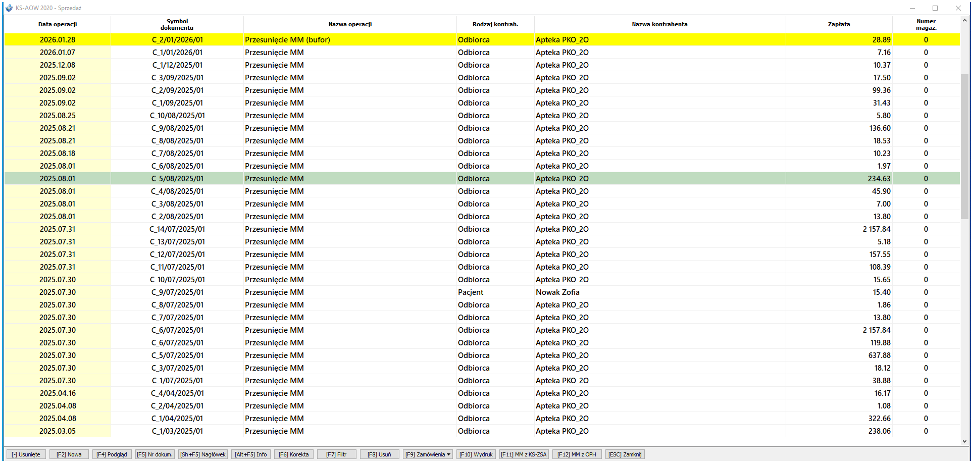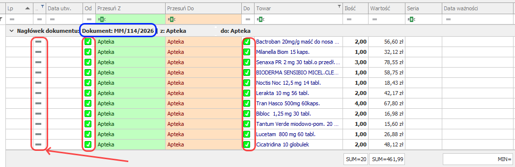 . Co oznacza, że dokument MM- został stworzony i zatwierdzony w aptece, z której miało nastąpić przesunięcie.