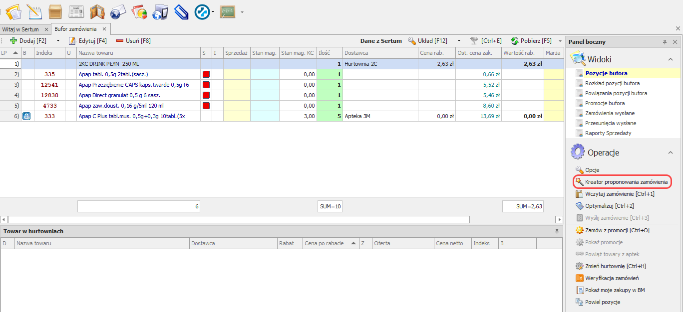 Przygotowaliśmy API (ang. application programming interface) umożliwiające hurtowniom farmaceutycznym wystawianie ofert dla aptek oraz odbieranie zamówień, które apteki wysyłają przez Sertum.