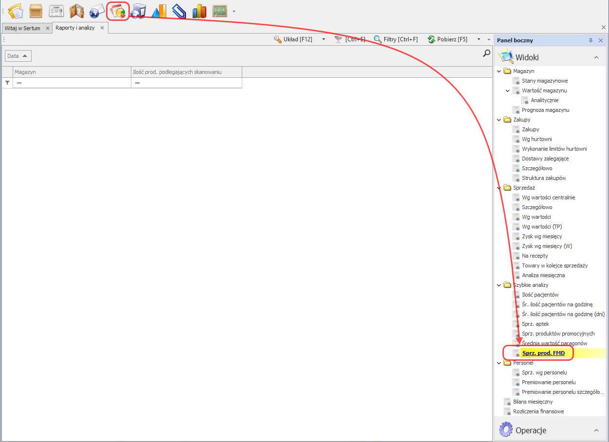 Znajduje się on w module Raporty i analizy -> widok Sprz. prod. FMD