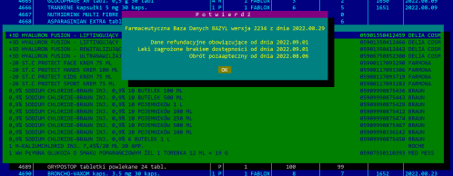 W dniu 31 sierpnia br. w godzinach wieczornych ukaże się aktualizacja programu Sertum Apteka Malickiego z dnia 2023.08.31 wraz z wersją Farmaceutycznej Bazy Danych BAZYL umożliwiająca automatyczną aktualizację parametrów leków refundowanych w asortymencie Apteki.