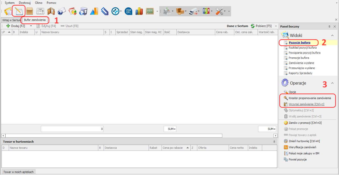 - Sertum automatycznie kojarzy zamawiane towary z towarami w ofertach wybranych hurtowni,