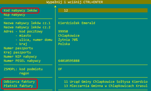 Podczas wystawiania faktury dla pacjenta dodano możliwość ręcznego wybrania dowolnej kombinacji danych NABYWCY, ODBIORCY i PŁATNIKA dla wystawianej faktury.