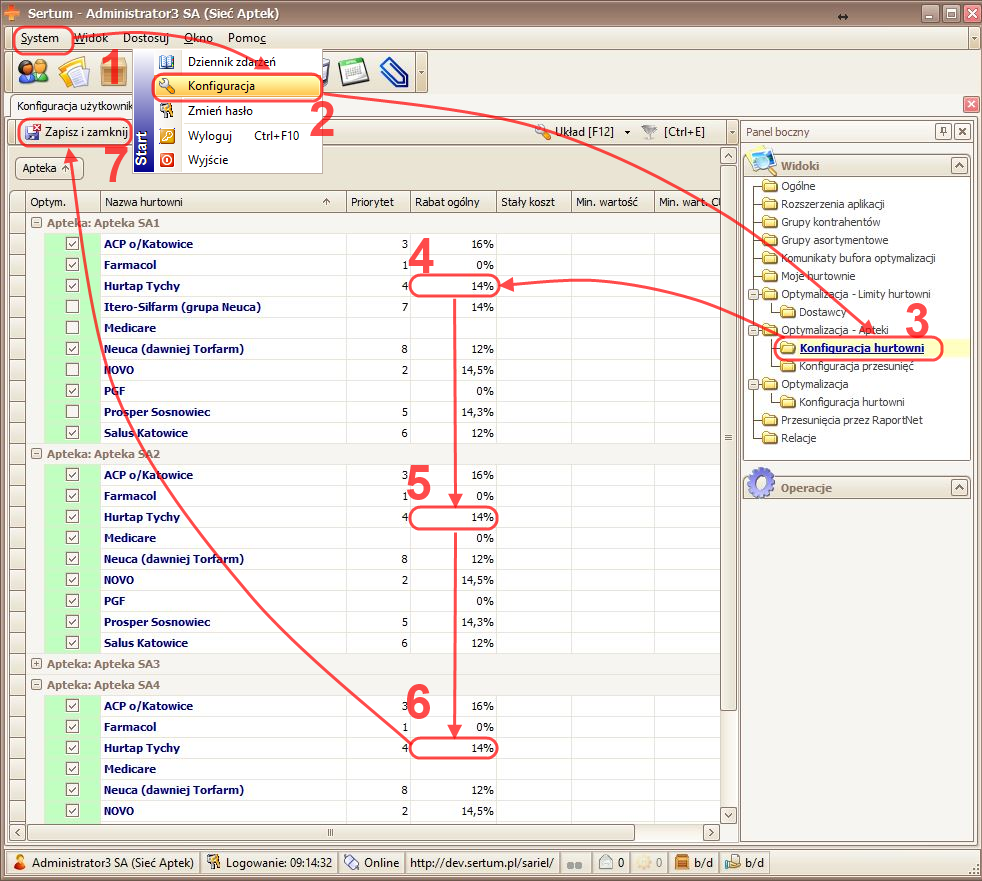 Ponadto przeniesiono tu opcję konfiguracji powiązania hurtowni w SERTUM z hurtownią programie aptecznym (wcześniej można było tego dokonać w kolumnie „Nazwa w prog. zew.” na liście hurtowni).