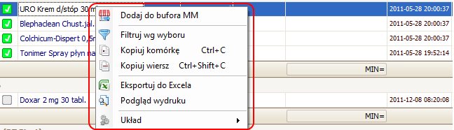– komunikaty zawierające kartoteki aptek wyświetlają się, jak kartoteka zostanie dodana do bufora;