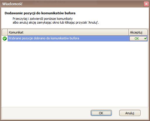 Jeśli okaże się, że dla pozycji znajdujących się w Buforze zamówienia zostały dodane komunikaty, to zostaną one wyświetlone po zoptymalizowaniu zamówienia.
