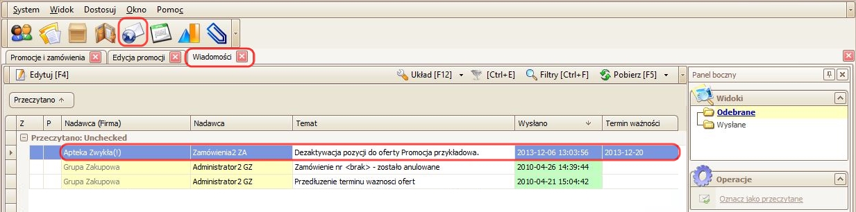 Spowoduje to wysłanie stosownej wiadomości w module Wiadomości do autora oferty promocyjnej.