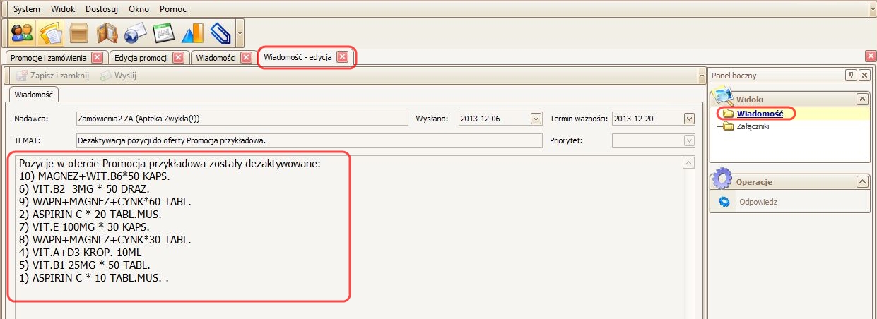 – dezaktywowana pozycja przestaje być widoczna dla apteki na liście dostępnych promocji (moduł Promocje i zamówienia -> widok Promocje):