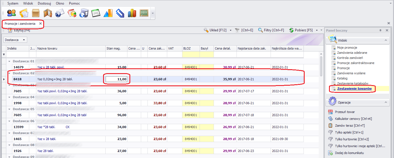 W kolejnym kroku otworzy nam się okno Promocje i zamówienia w widoku Zestawienie towarów.
