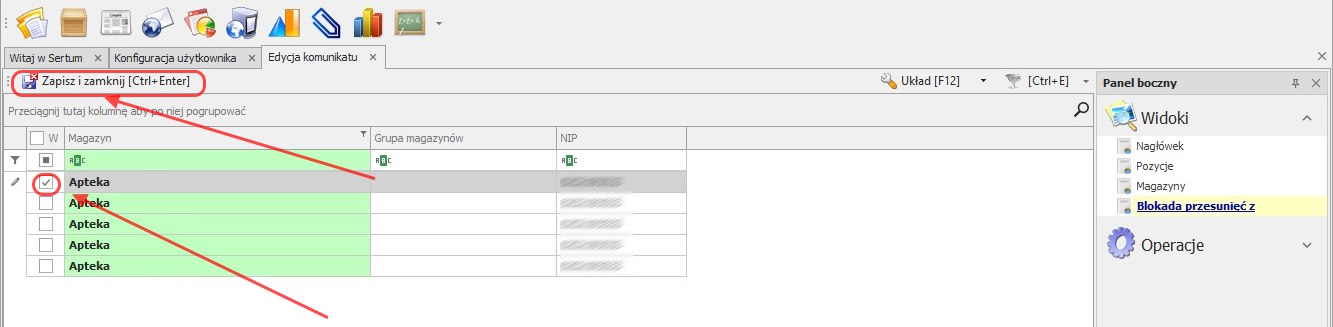 Aktualnie w aplikacji Sertum istnieje możliwość zablokowania z poziomu loginu menedżerskiego, przesunięć na wskazane w komunikatach preparaty.