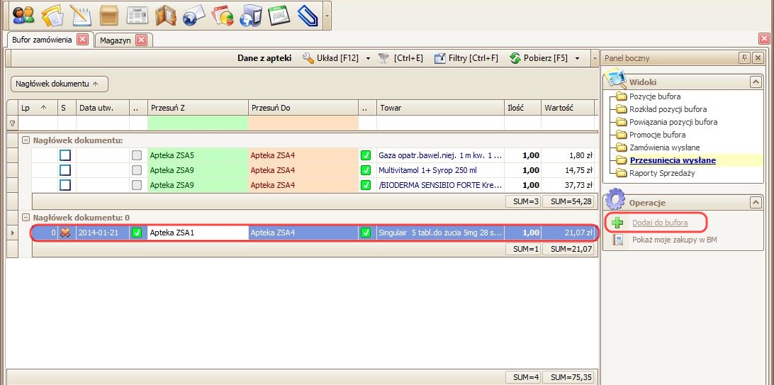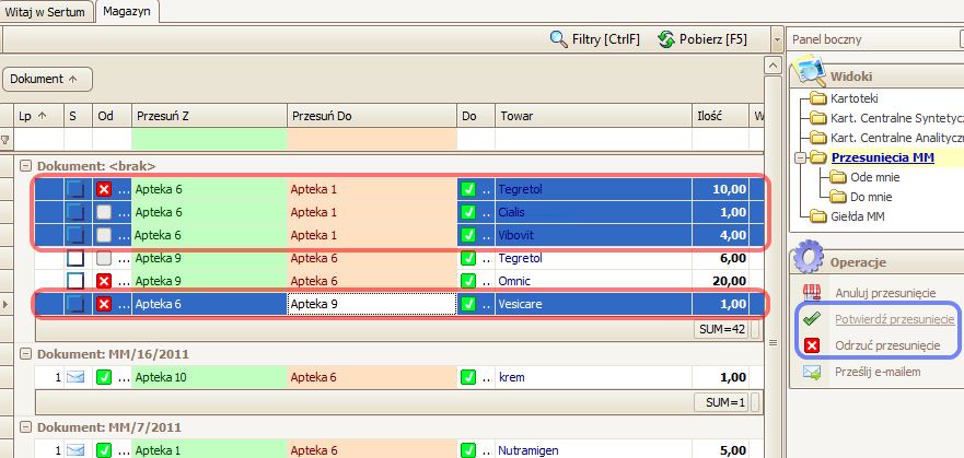 - najwyższego stanu magazynowego – jeżeli kilka aptek spełnia ustawione warunki, to towar zostanie przesunięty z tej o najwyższym stanie magazynowym;