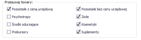 Zaznaczając daną grupę produktów sprawiamy, że SERTUM uwzględni ją podczas optymalizacji.Po zoptymalizowaniu zamówienia aplikacja zaproponuje do przesunięcia tylko towary z wybranych grup. Stanie się tak, jeśli: