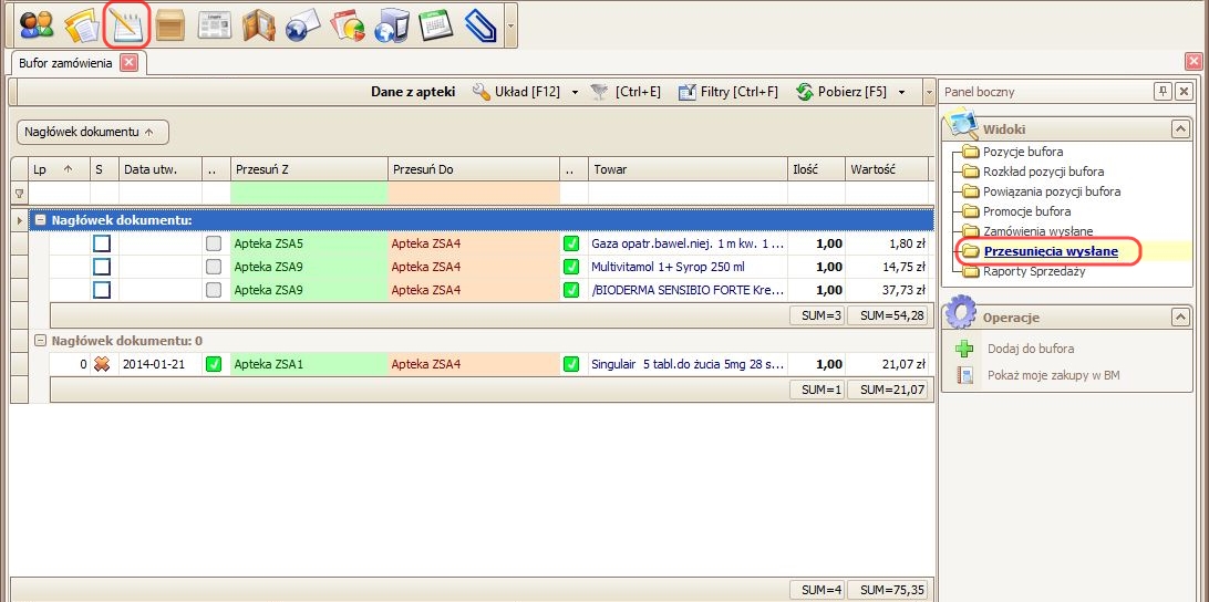 Warunkiem jest jednak posiadanie identycznej Konfiguracji przesunięć (identycznie ustawionego parametru Pozostanie zapas na … dni (w okresie analizy)) w każdej z aptek należących do sieci.