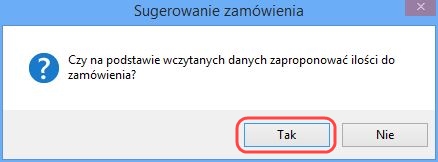 Po kliknięciu operacji Wczytaj zamówienie, w oknie, które się otworzy należy następnie kliknąć przycisk Proponuj zamówienie: