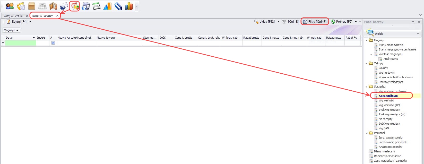 W odpowiedzi na zgłoszenia użytkowników w Sertum ver. 3.1.4 rozbudowano raport Sprzedaż szczegółowo (moduł Raporty i analizy -> folder Sprzedaż -> widok Szczegółowo).